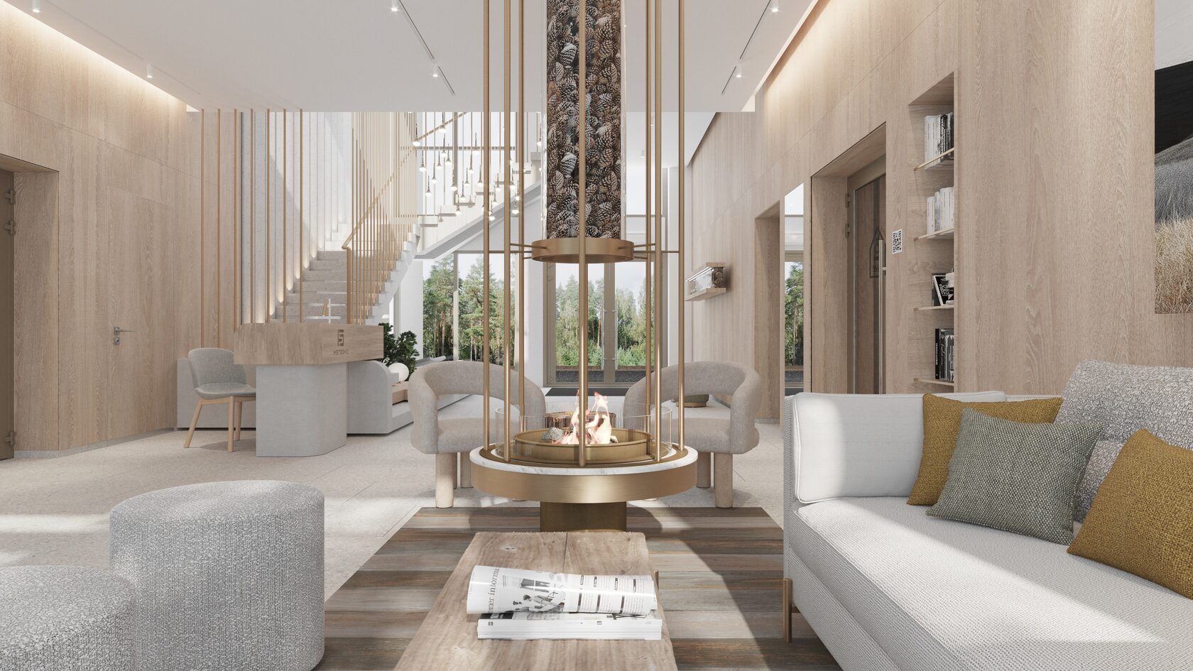 Лобби с камином